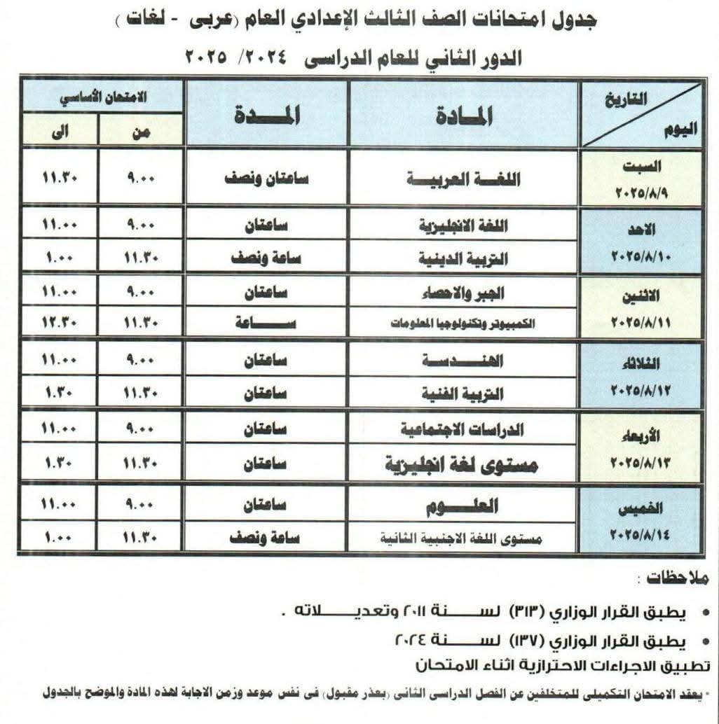 بناء على تعليمات  محمد عبد اللطيف وزير التربية والتعليم وتوجيهات الدكتور أيمن الشهابي محافظ دمياط، رفعت مديرية التربية والتعليم بدمياط درجة الاستعداد القصوى لاستقبال امتحانات الدور الثاني للشهادة الإعدادية، والتي من المقرر أن تنطلق يوم السبت، الموافق 9 أغسطس 2025، وتستمر حتى الخميس، 14 أغسطس.