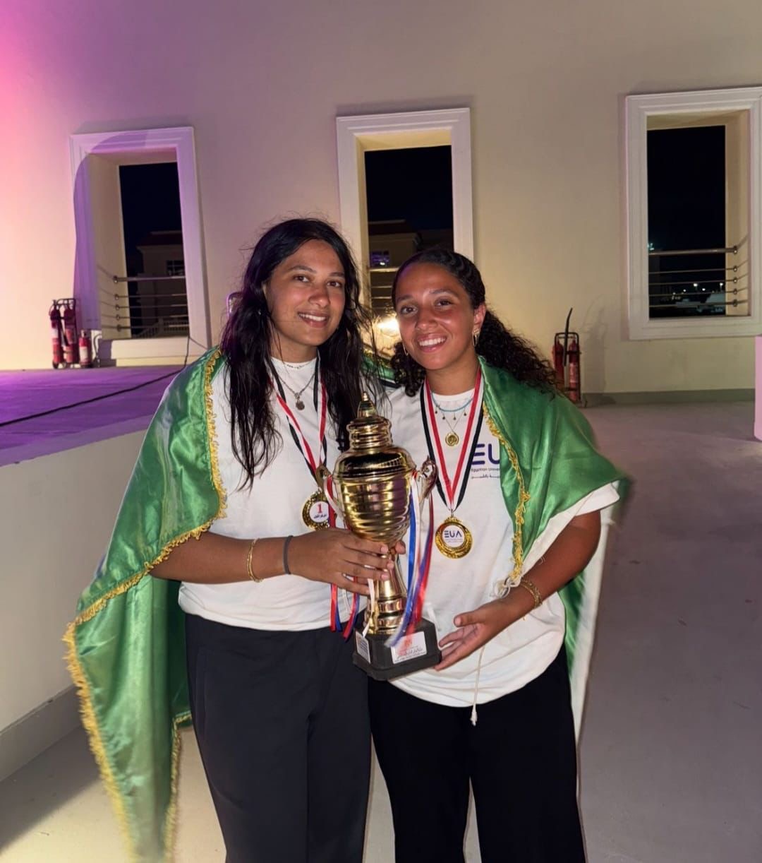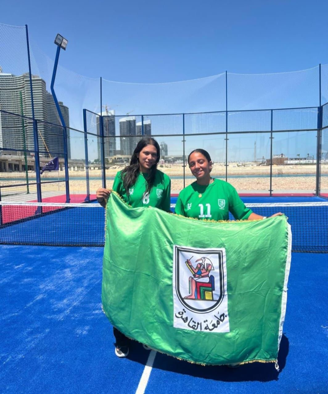 وضم الفريق الفائز بالمركز الأول في منافسات تنس البادل الطالبة شذا محمد منصور بكلية طب قصر العيني، والطالبة ملك شريف صادق بكلية طب قصر العيني، فيما ضم الفريق الفائز بالمركز الثاني في منافسات كرة الطائرة الشاطئية الطالب أحمد هشام بكلية الاقتصاد والعلوم السياسية، والطالب يوسف حازم بكلية التجارة.