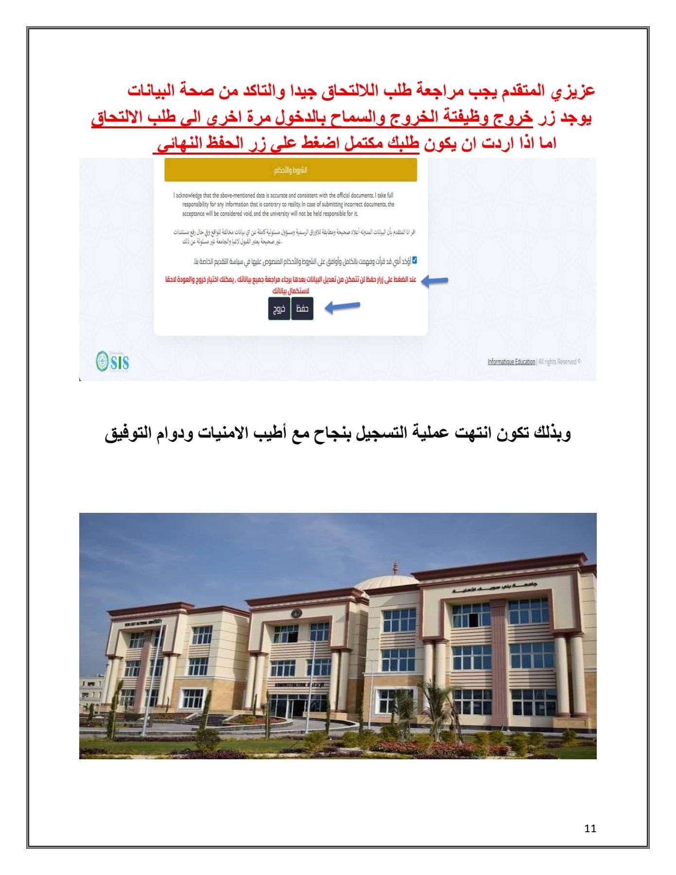- رفع جميع المستندات المطلوبة على نظام التسجيل الإلكتروني خلال الفترة المحددة للتسجيل.