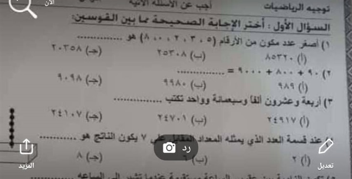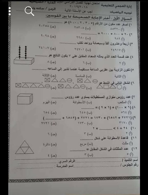 تداول رواد موقع التواصل الاجتماعي "فيس بوك" صورة من امتحان مادة الرياضيات الخاص بإحدى الصفوف الابتدائية، حيث جاء في الامتحان خطأ في إحدى نقاط السؤال الأول.