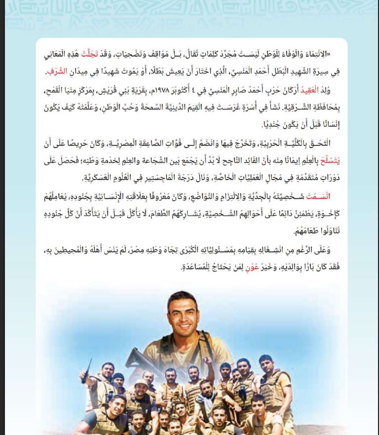 أعلنت وزارة التربية والتعليم والتعليم الفنى عن المناهج المطورة ومن بينها منهج اللغة العربية للصف الأول الاعدادى، وتضمنت المناهج درس كامل عن البطل أحمد المنسي.