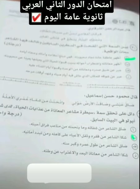 نقدم لكم إجابة امتحان اللغة العربية للثانوية العامة الدور الثاني، بعد أن أدى طلاب الثانوية العامة امتحاني اللغة العربية والتربية الدينية في الدور الثاني، اليوم للنظامين الحديث والقديم في بداية انطلاق اختبارات الدور الثاني للعام الدراسي الحالي على مستوى الجمهورية.