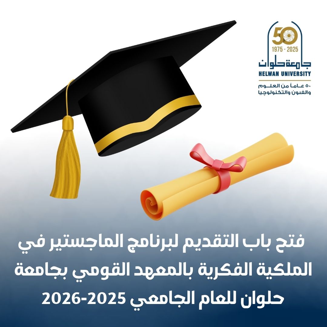 تنسيق الجامعات 2025.. فتح باب التقديم لبرنامج الماجستير في الملكية الفكرية بـ"جامعة حلوان"
