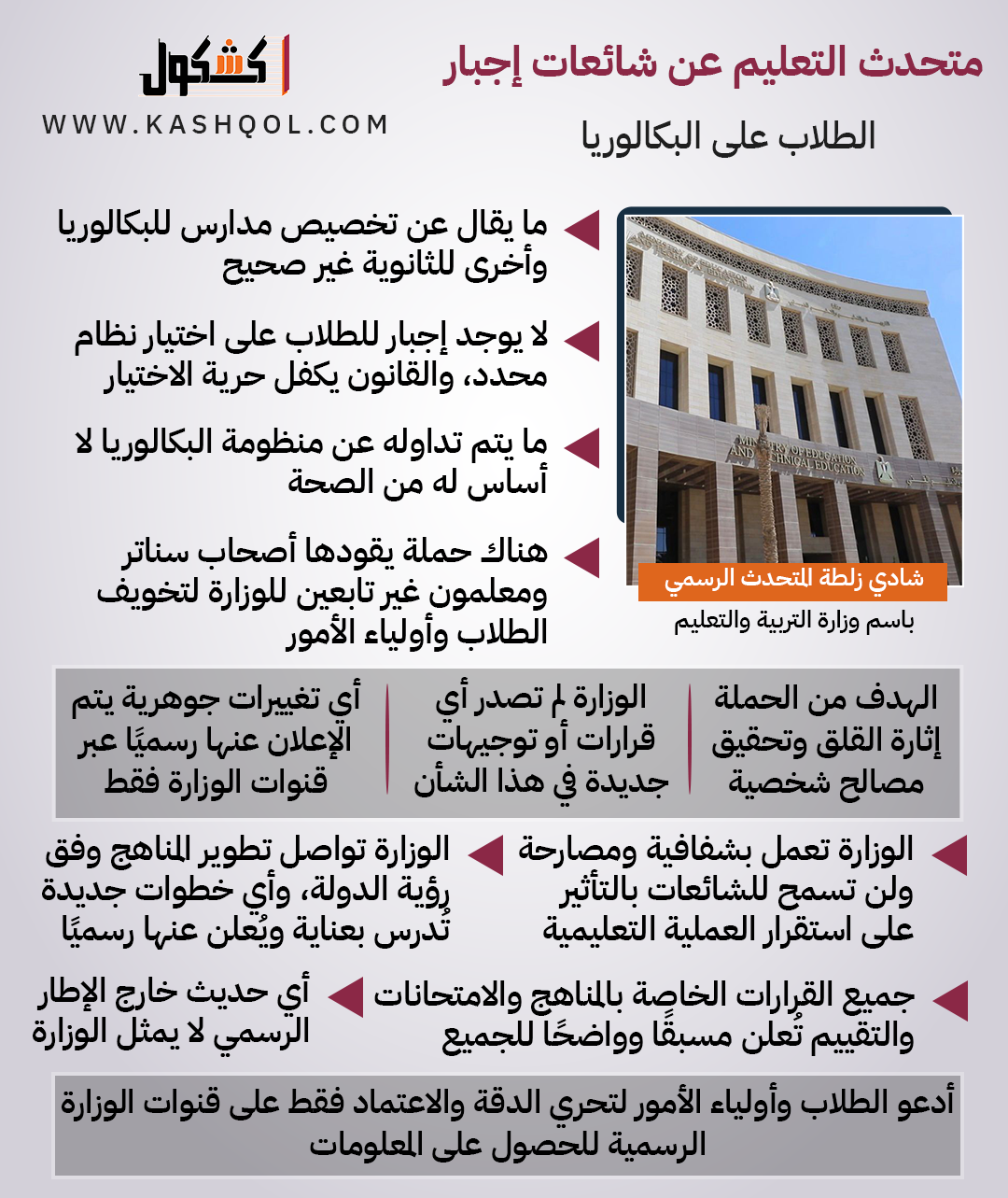 متحدث «التعليم» يكشف حقيقة إجبار الطلاب على اختيار البكالوريا المصرية «انفوجراف»