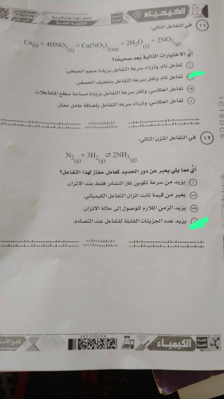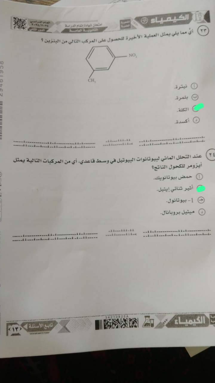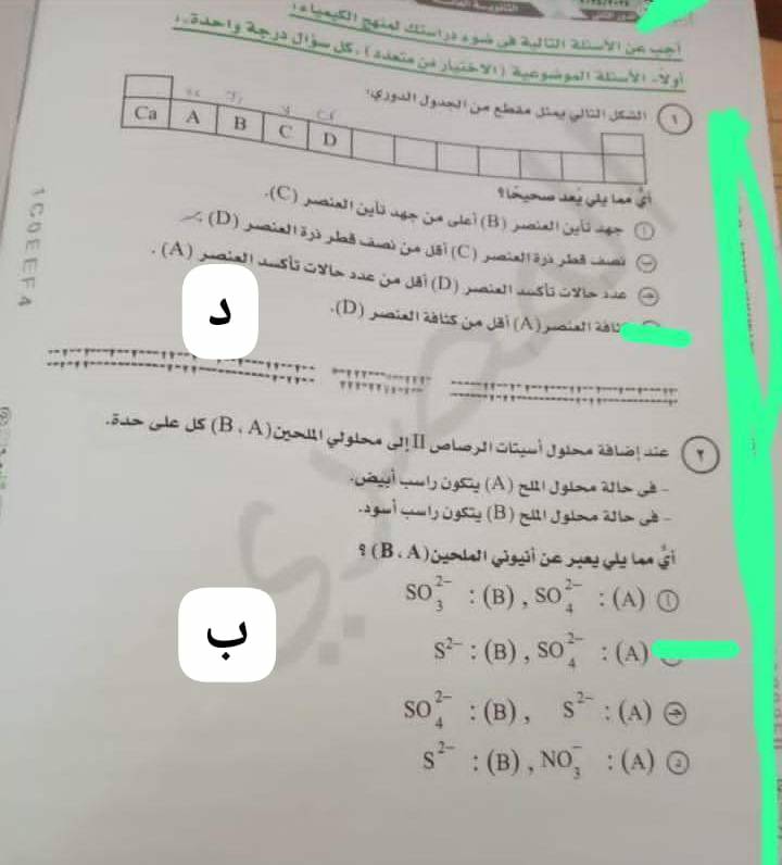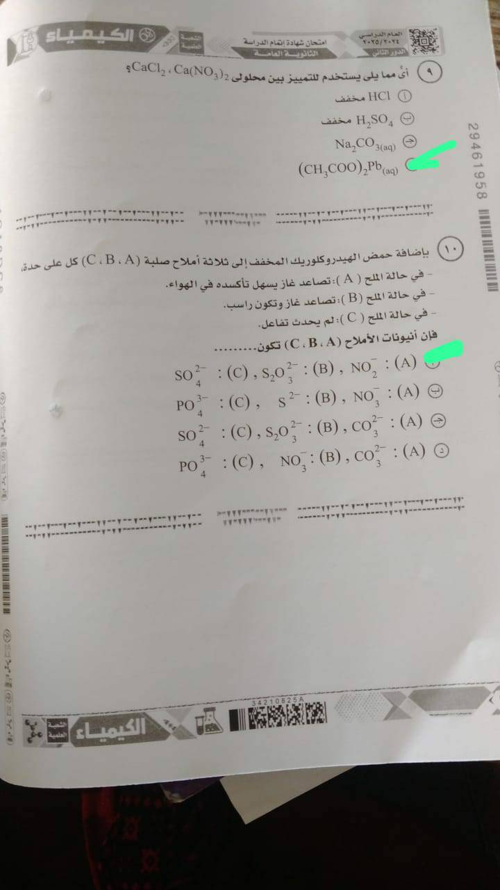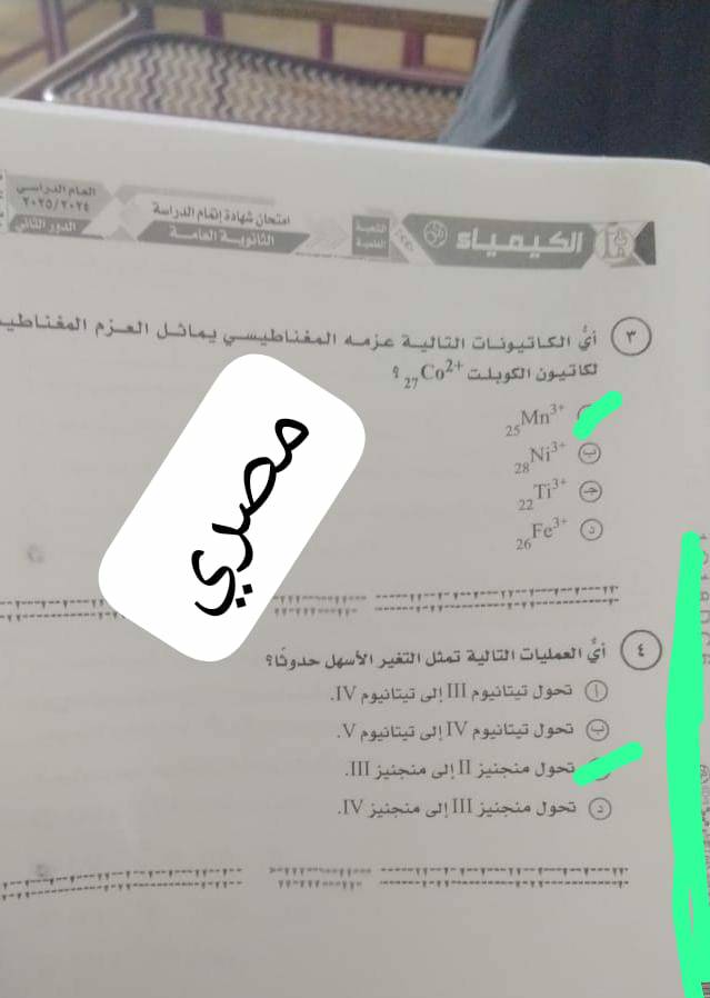 حل امتحان الكيمياء للثانوية العامة دور ثاني 2025