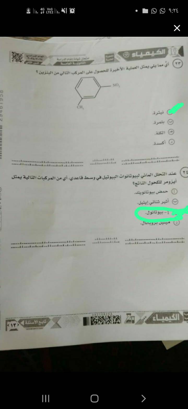 إجابة امتحان الكيمياء للثانوية العامة دور ثاني 2025.. الحلول كاملة بالصور