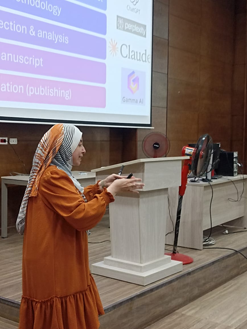 هذا وتضمنت الورشة محاضرات تطبيقية حول أهم أدوات وتطبيقات الذكاء الاصطناعي التي يمكن توظيفها في مختلف مراحل البحث العلمي، بدءًا من صياغة سؤال وفكرة البحث ومراجعة وتلخيص الأبحاث السابقة في نفس المجال، واختيار التصميم المناسب للدراسة، وتحديد عنوان مناسب للبحث مرورا بإضافة المراجع المستخدمة بكل سهولة ودقة باستخدام برامج تعتمد على تقنيات الذكاء الاصطناعي، وانتهاءا بنشر البحث في الأوساط العلمية سواءا كانت مؤتمرات من خلال عروض تقديمية او إختيار المجلة العلمية المناسبة للبحث.
