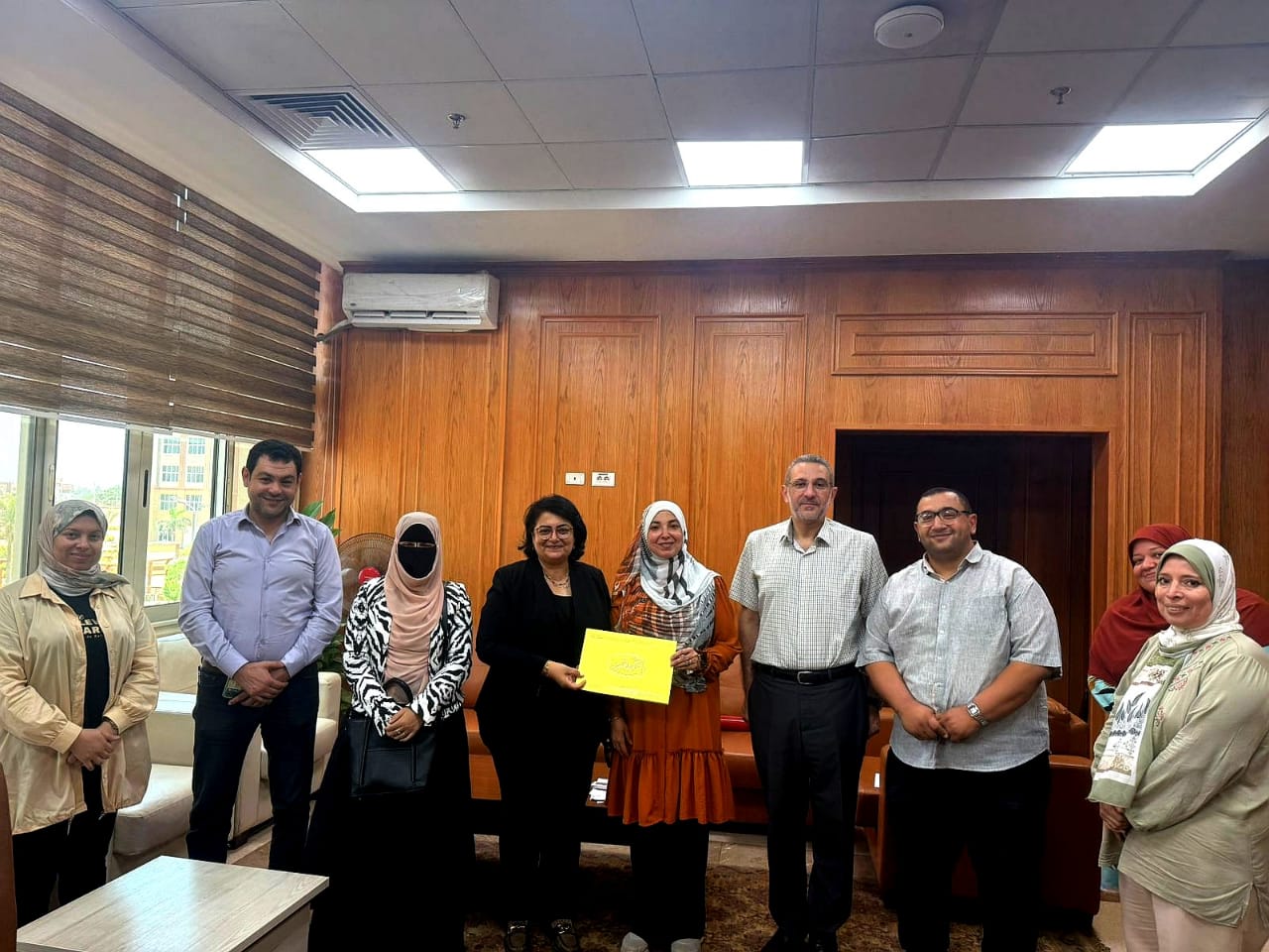 وقامت الدكتورة نانسي أسعد بتكريم الدكتورة مروة محمد سراج الدين على جهودها في تنفيذ الورشة التدريبية، وذلك بحضور الدكتور أشرف بلبع عميد القطاع الطبي وعدد من مديري ومنسقي البرامج ومدير إدارة رعاية الطلاب بالجامعة.