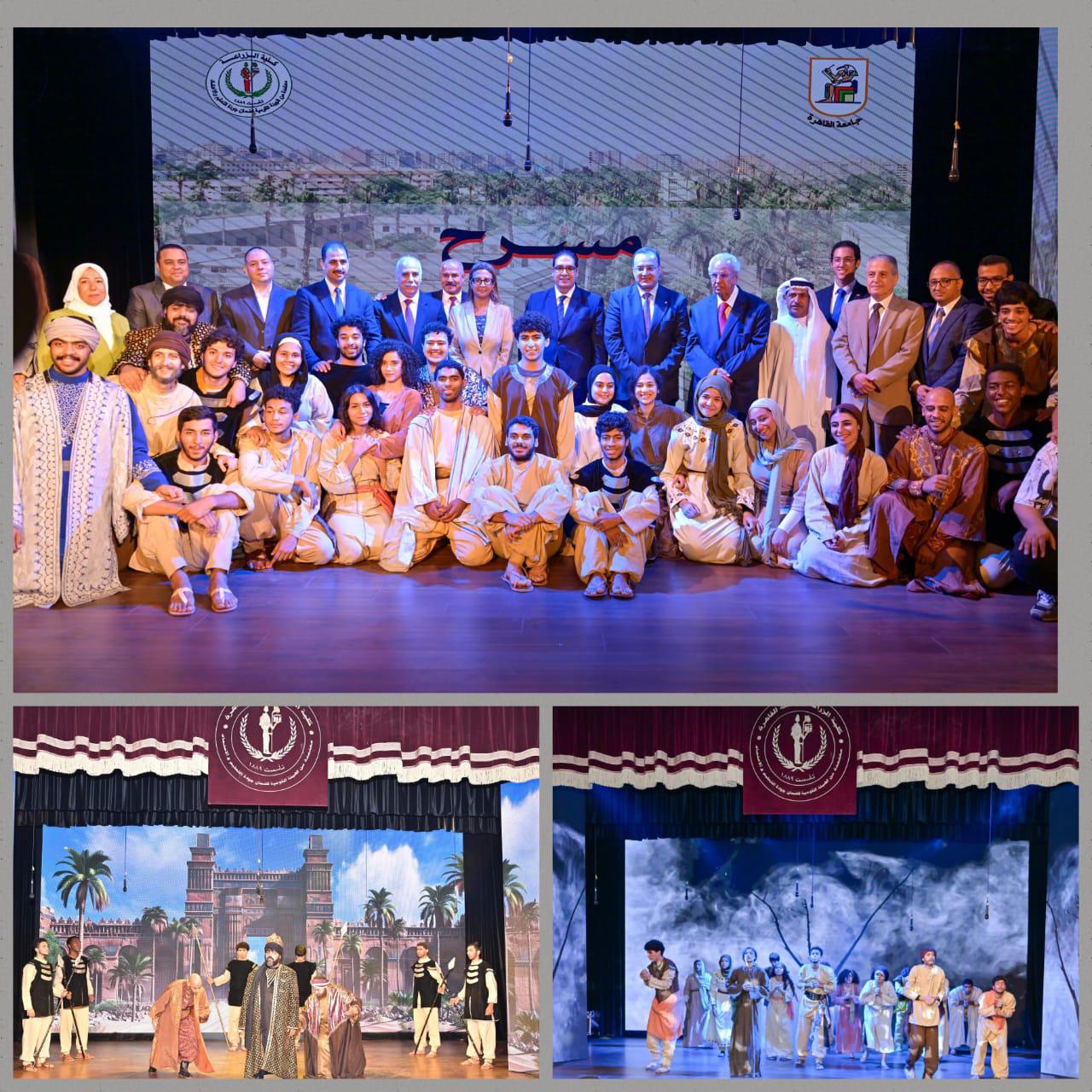 وعلى هامش افتتاح عمليات التجديد والتطوير بمسرح "حشاد"، شهد الدكتور محمد سامي عبد الصادق فعاليات العرض المسرحي "النمرود" من تأليف الشيخ الدكتور القاسمي، كما أهدى الدكتور أيمن يحيى نسخة من المصحف الشريف لرئيس الجامعة.