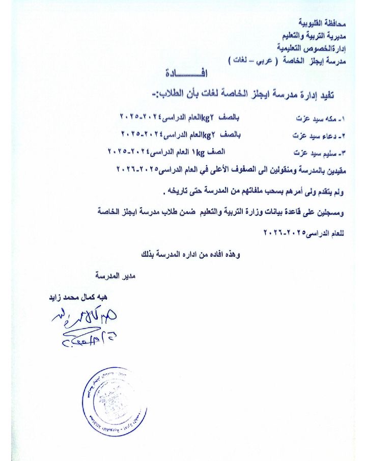 لكن مصادر مسؤولة بوزارة التربية والتعليم كشفت لـ”كشكول ” عن مستند رسمي يثبت عدم صحة ما تم تداوله من جانب الأسرة، مؤكدة أن أبناء السيدة ما زالوا مقيدين بالمدرسة بشكل طبيعي، ولم يتعرضوا لأي إجراء إداري أو تعليمي يمس حقهم في استكمال دراستهم.