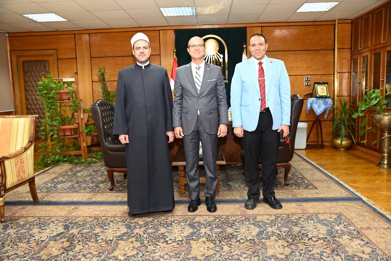 رئيس جامعة أسيوط يستقبل الأمين العام المساعد للجنة العليا لشئون الدعوة بمجمع البحوث الإسلامية لتعزيز التعاون الفكري والتوعوي
