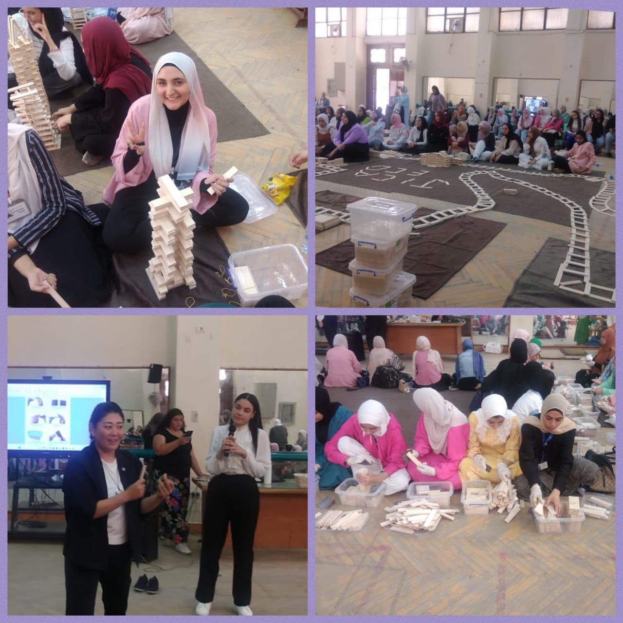 نظمت كلية التربية للطفولة المبكرة جامعة القاهرة تحت رعاية الدكتور محمد سامي عبدالصادق رئيس الجامعة، وإشراف الدكتورة جيهان عزام عميد الكلية، ورشة عمل لطلاب برنامج إعداد معلمي الحضانة تحت عنوان"تعزيز مفهوم التعلم من خلال اللعب بإستخدام الالواح الخشبية"، بالتعاون مع وزارة التضامن الاجتماعي وهيئة التعاون الدولي اليابانية"جايكا"، وذلك بمقر الكلية.