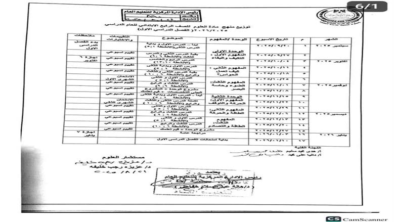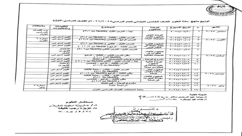 عاجل| توزيع منهج العلوم للمرحلة الابتدائية في الفصل الدراسي الأول 2026