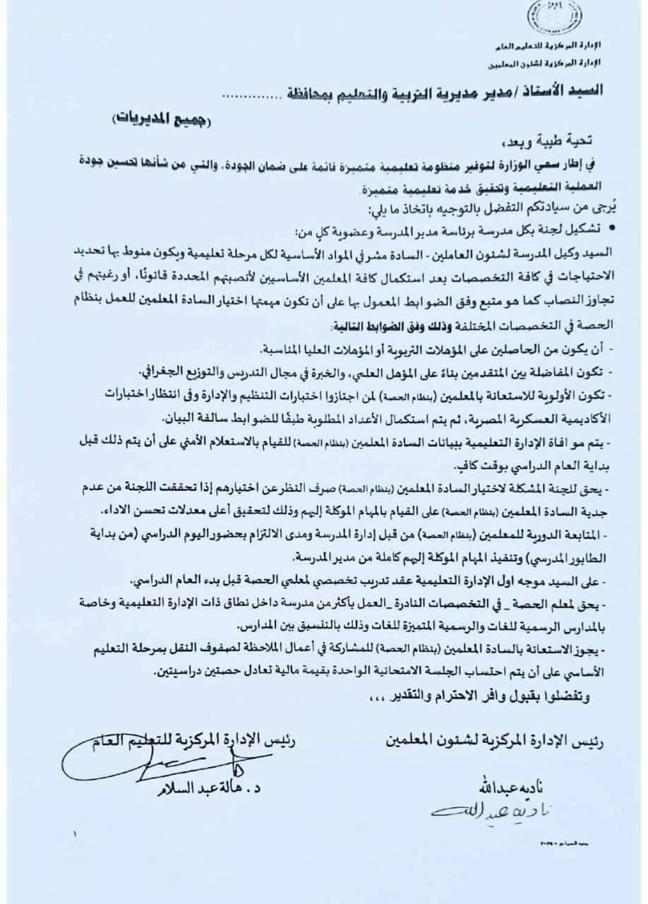 3. تكون الأولوية للاستعانة بالمعلمين بنظام الحصة) لمن اجتازوا اختبارات التنظيم والإدارة وفي انتظار اختبارات الأكاديمية العسكرية المصرية، ثم يتم استكمال الأعداد المطلوبة طبقا للضوابط سالفة البيان.