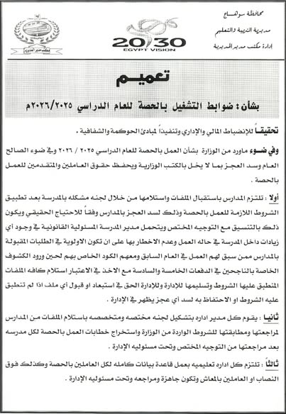 عاجل| الأولوية لهؤلاء.. ضوابط التعاقد مع معلمي الحصة بالعام الجديد 2025/2026