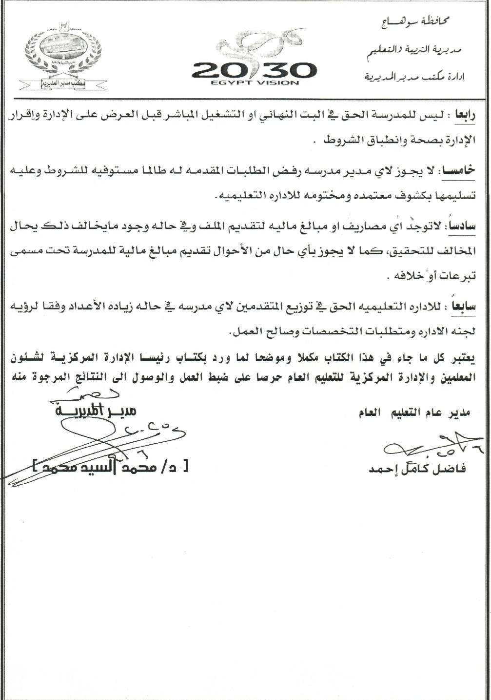 - لا يجوز لاي مدير مدرسة رفض الطلبات المقدمة له طالما مستوفية للشروط وعليه تسليمها بكشوف معتمدة ومختومة للادارة التعليمية.