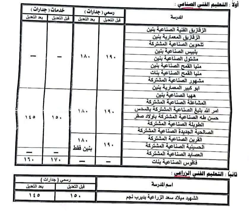 قرر المهندس حازم الأشموني محافظ الشرقية النزول بالحد الأدنى لتنسيق القبول بالصف الأول الثانوي الفني للعام الدراسي القادم، وذلك للناجحين في الشهادة الإعدادية العامة للعام الدراسي المنقضي، بعدد من المدارس بنطاق المحافظة طبقا للكشف المرفق.