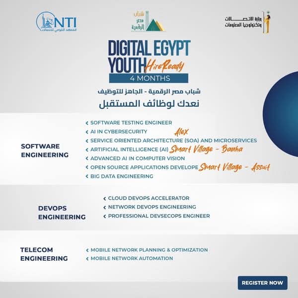 أعلن المعهد القومي للاتصالات عن فتح باب التسجيل في مبادرة "شباب مصر الرقمية – الجاهز للتوظيف" منحة الأربعة أشهر، للخريجين خلال السنوات الخمس الأخيرة.