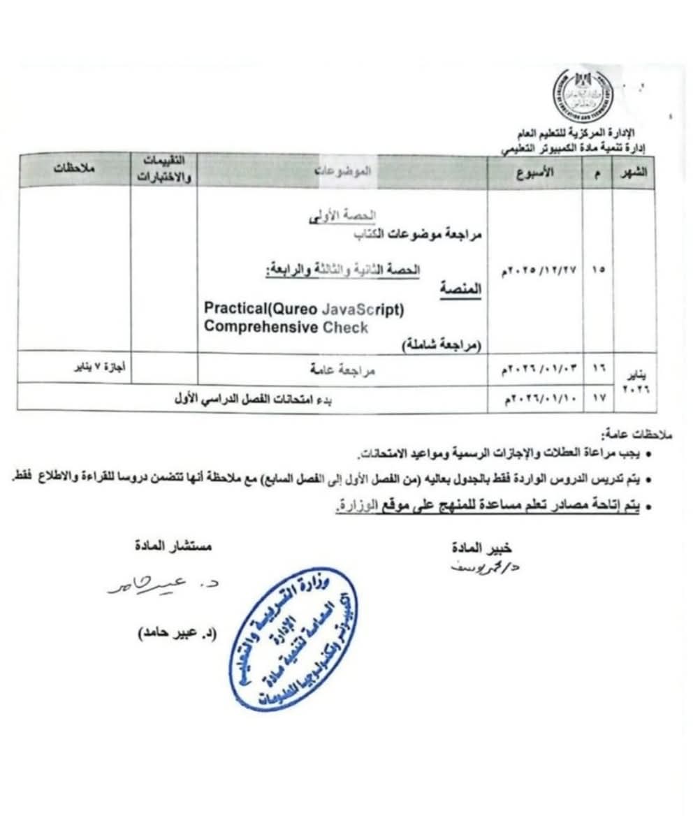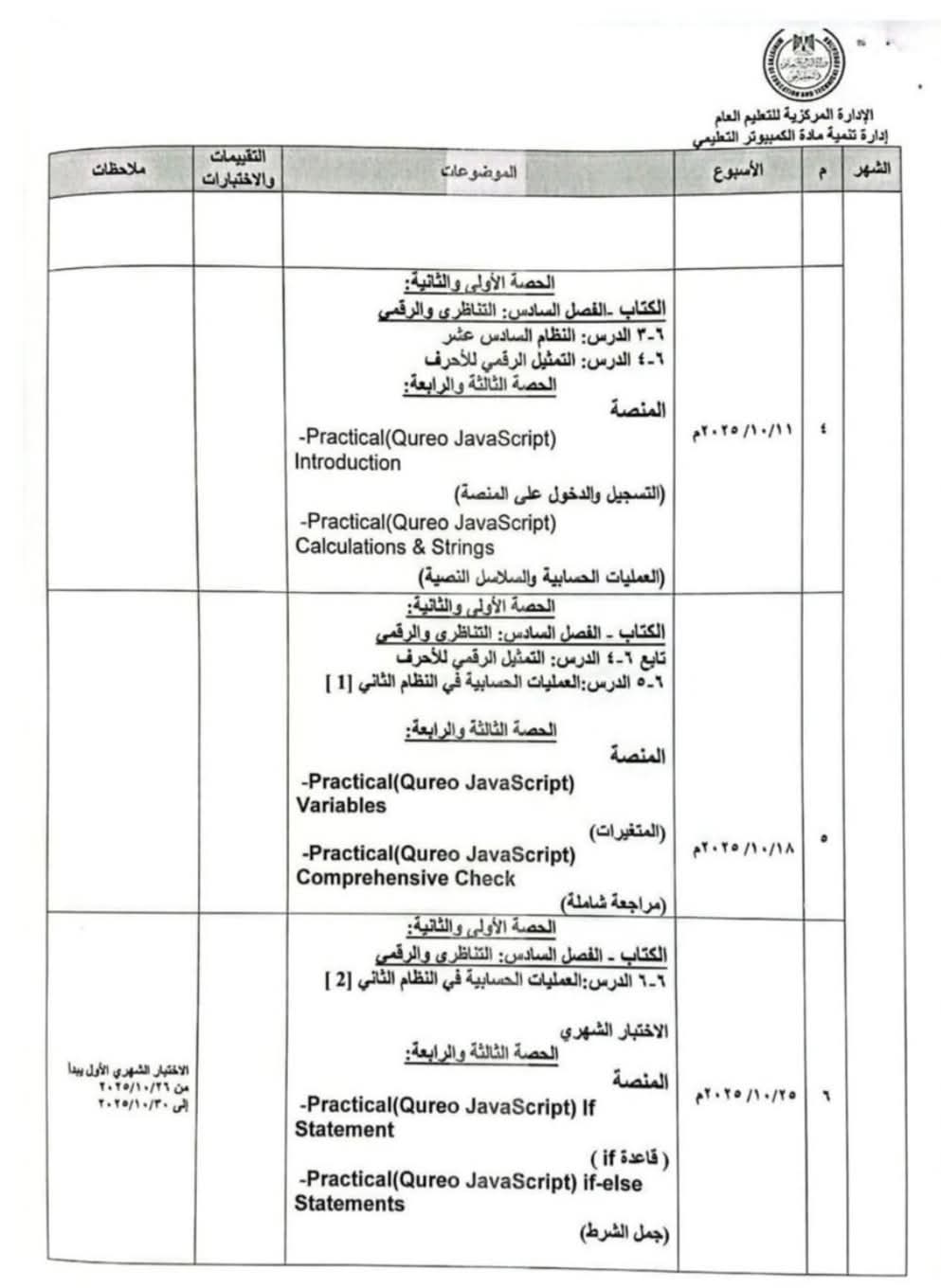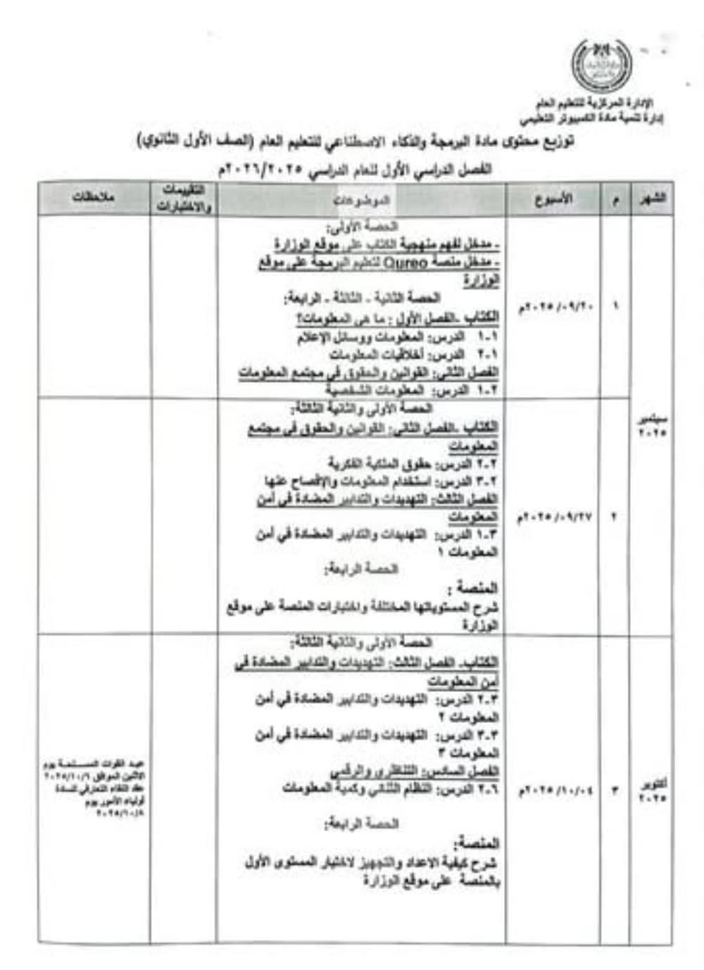عاجل.. توزيع منهج مادة البرمجة والذكاء الاصطناعي لأولى ثانوي الترم الأول