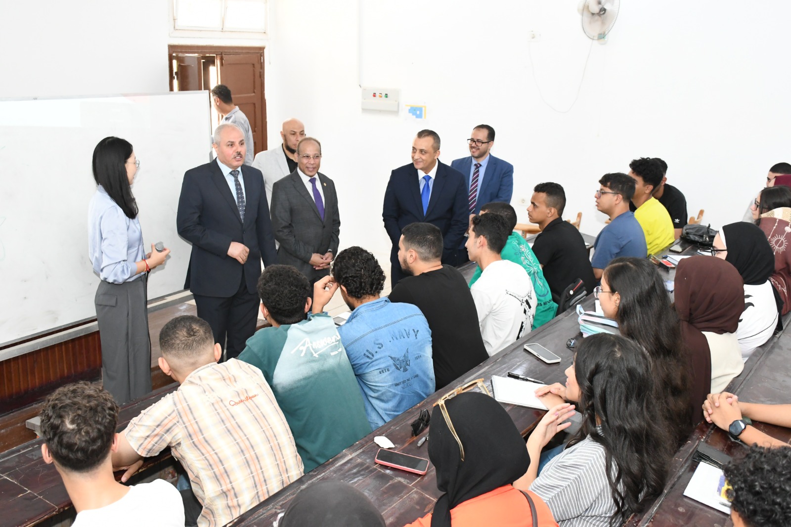 جولة تفقدية لقيادات جامعة قناة السويس لمتابعة سير الدراسة بالكلية
