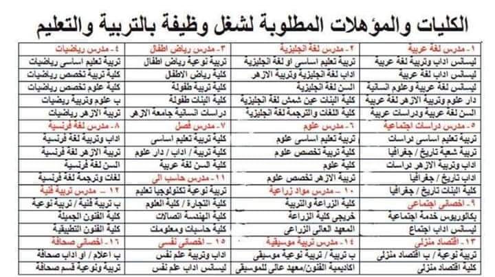 أعلنت محافظة البحيرة بعد حساب العجز أنها تحتاج إلي حوالي 10134 معلم في التخصصات التالية:
