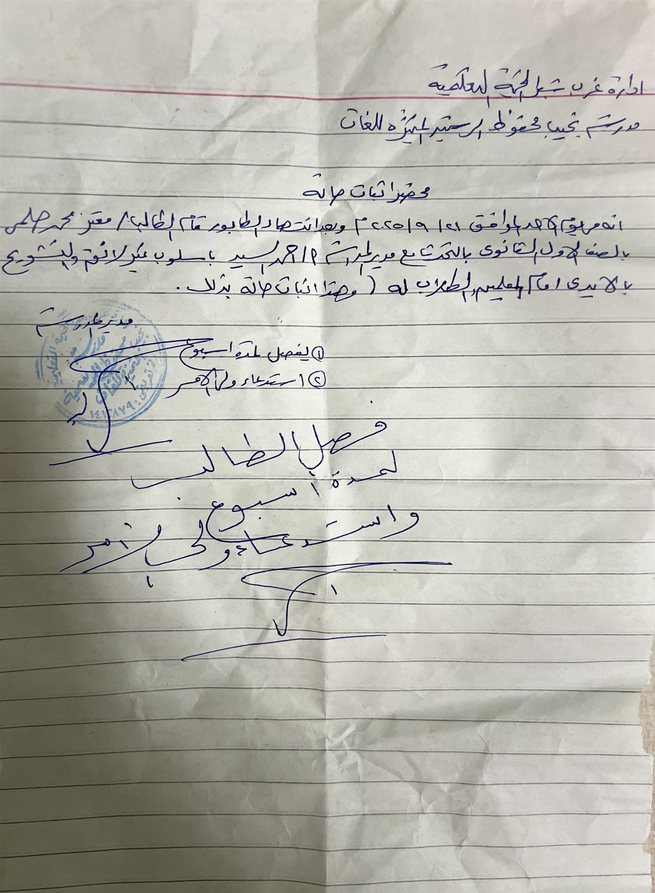 أول قرار فصل لطالب في العام الدراسي 2026
