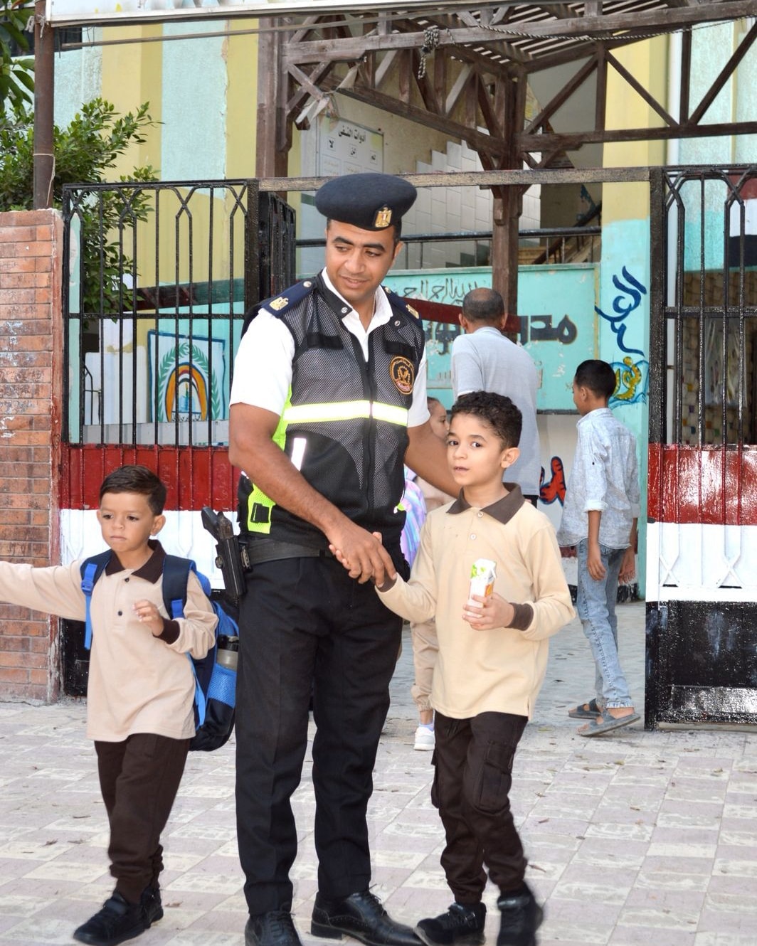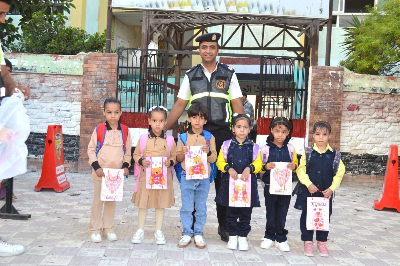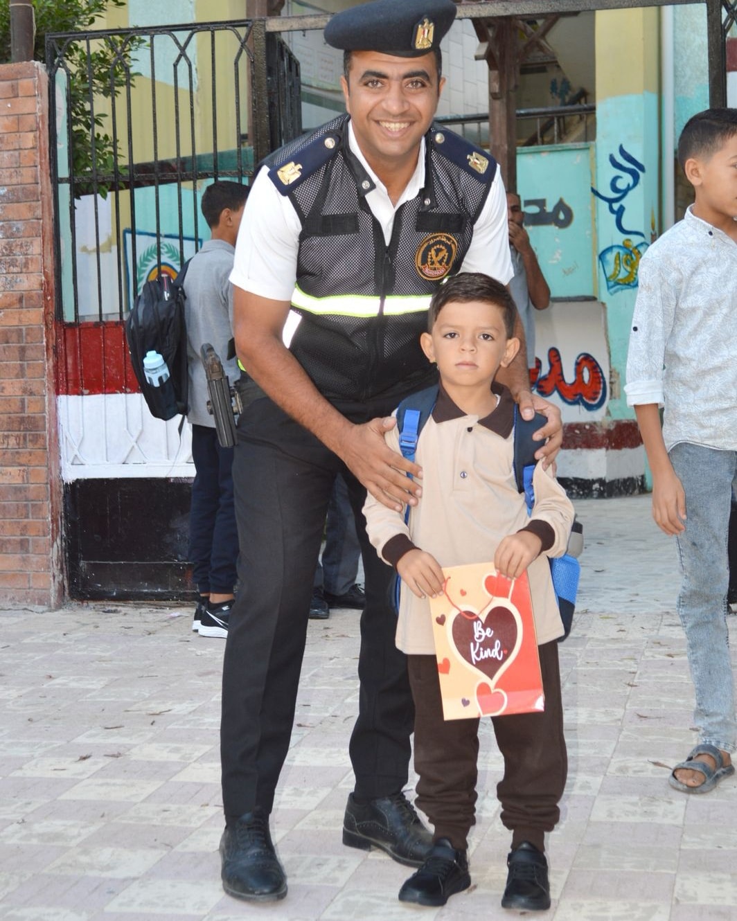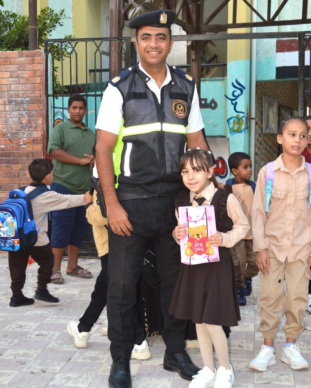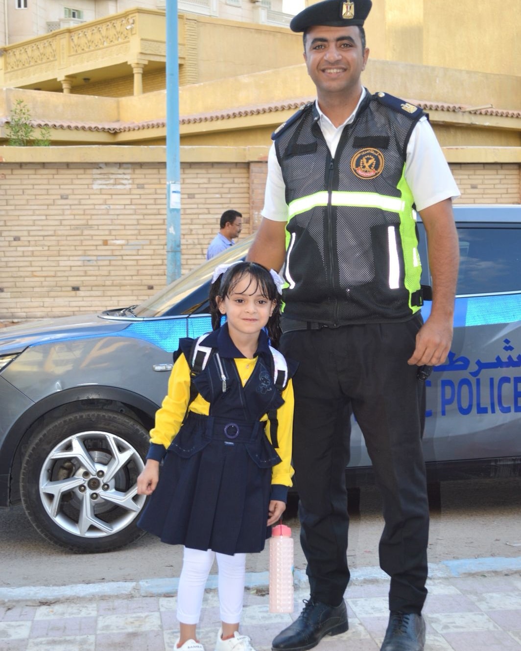 ضباط مرور مطروح يلتقطوا صور تذكارية مع التلاميذ بأول أيام الدراسة