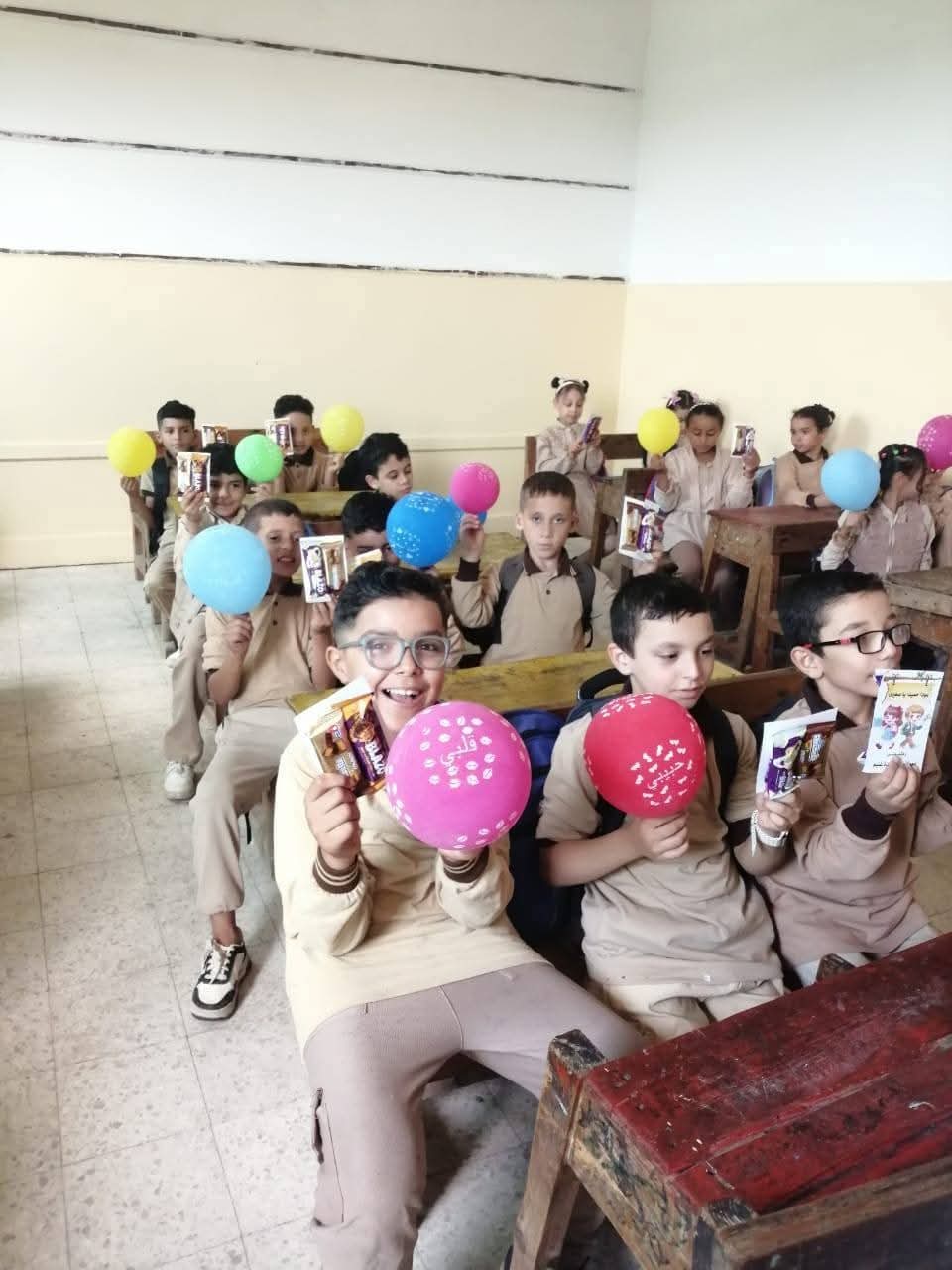 حيث استقبلت معلمة بمدرسة الشهيد محمد مقلد الابتدائية بلاصيفر البلد التابعة لإدارة دسوق التعليمية بمحافظة كفرالشيخ، بالبلالين والهدايا التي تضمنت شيكولاته وحلوى، وكتبت على السبورة «الفصل يتزين لاستقبال أحبائي».