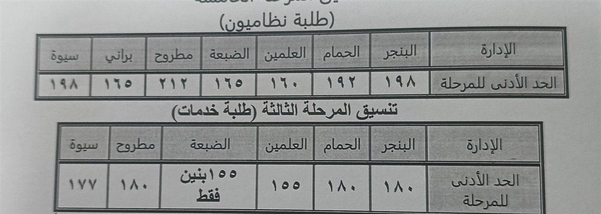 كما اعتمد محافظ مطروح تنسيق المرحلة الثانية لطلبة الخدمات مع التأكيد فى القبول للطلاب الحاصلين على الشهادة الإعدادية من الإدارة التى يريد التقدم للصف الأول الثانوي بالمدارس التابعة لها.مع الالتزام بالتوزيع الجغرافي حتى لا يحدث تباين في الكثافة.