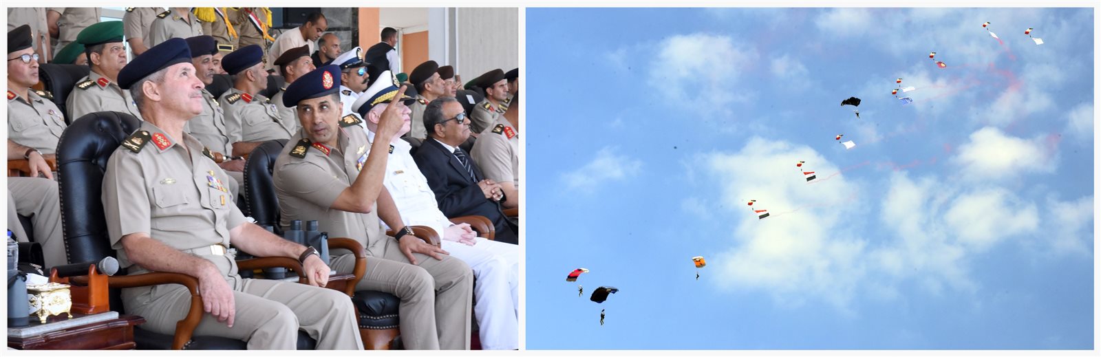 كما شاركت قوات المظلات بإستعراض مهاراتها الإحترافية بإستخدام معدات الدلتا وإسقاط مجموعات القفز الحر، وقدمت الموسيقات العسكرية عرضًا متميزًا عكس مدى التوافق الحركى والتناغم فى الأداء.