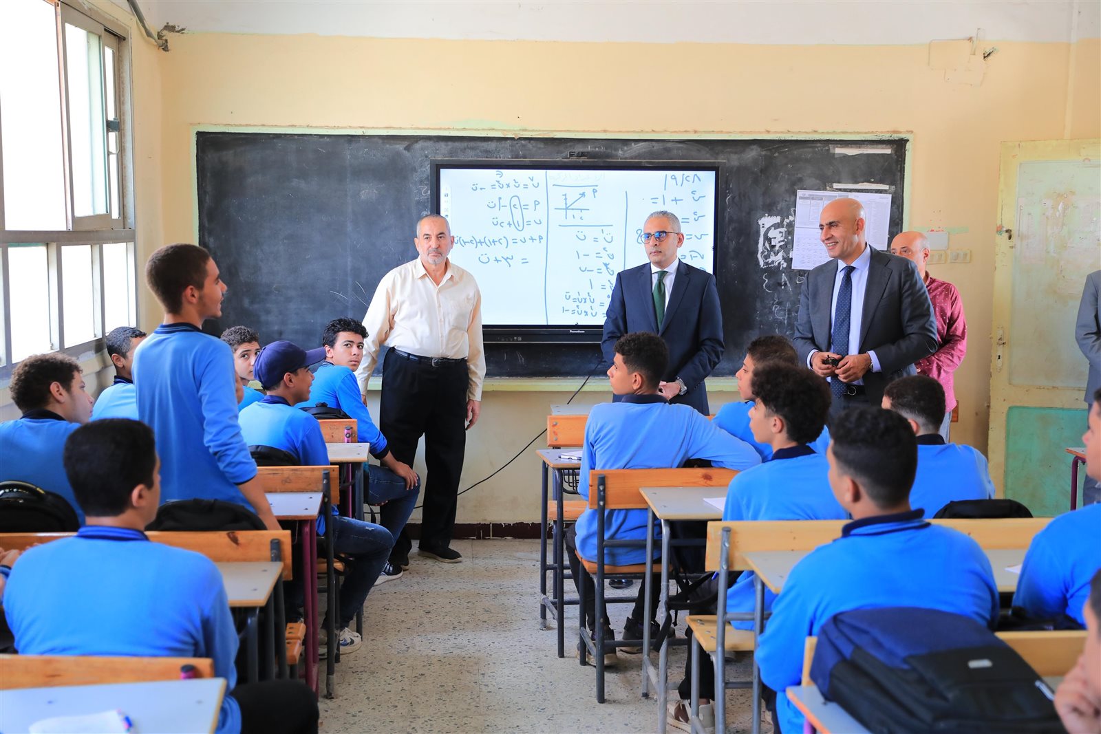 وخلال الجولة، اطلع الوزير على نسب الكثافة الطلابية والحضور، ووجّه بضرورة الالتزام باجراء التقييمات الأسبوعية في موعدها.