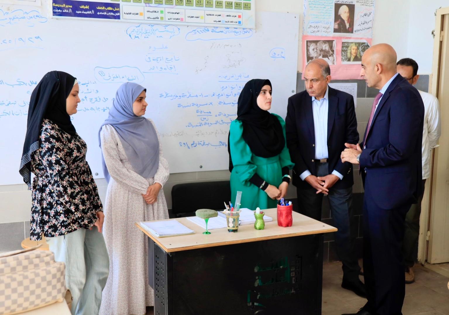 وشملت الجولة كذلك تفقد مدرسة "تونة الجبل للتعليم الأساسي"، التي تضم (460) طالبًا وطالبة، حيث تابع الوزير انتظام صفوف المرحلة الابتدائية، مؤكدًا على أهمية مواصلة تنمية مهارات القراءة والكتابة لدى الطلاب، وتبسيط المناهج، واجراء التقييمات في موعدها.