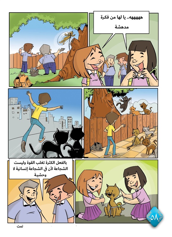 من القصص المصورة: "عائلة قمر"، "مغامرات فالح"، "ثمن الحرية"،