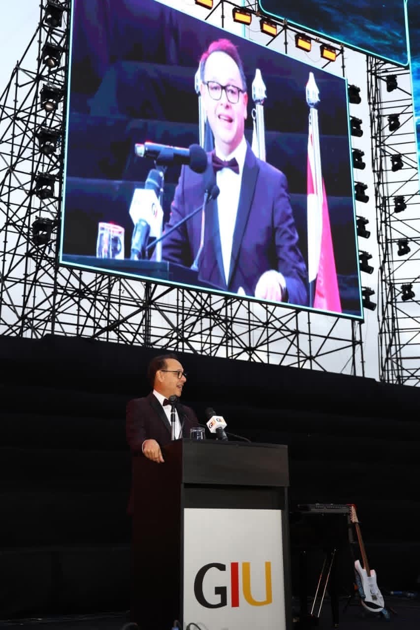 كما شهد الحفل استعراض طابور الخريجين وحفل فني لبعض الشباب الموهوبين من خريجي الجامعة الألمانية الدولية.