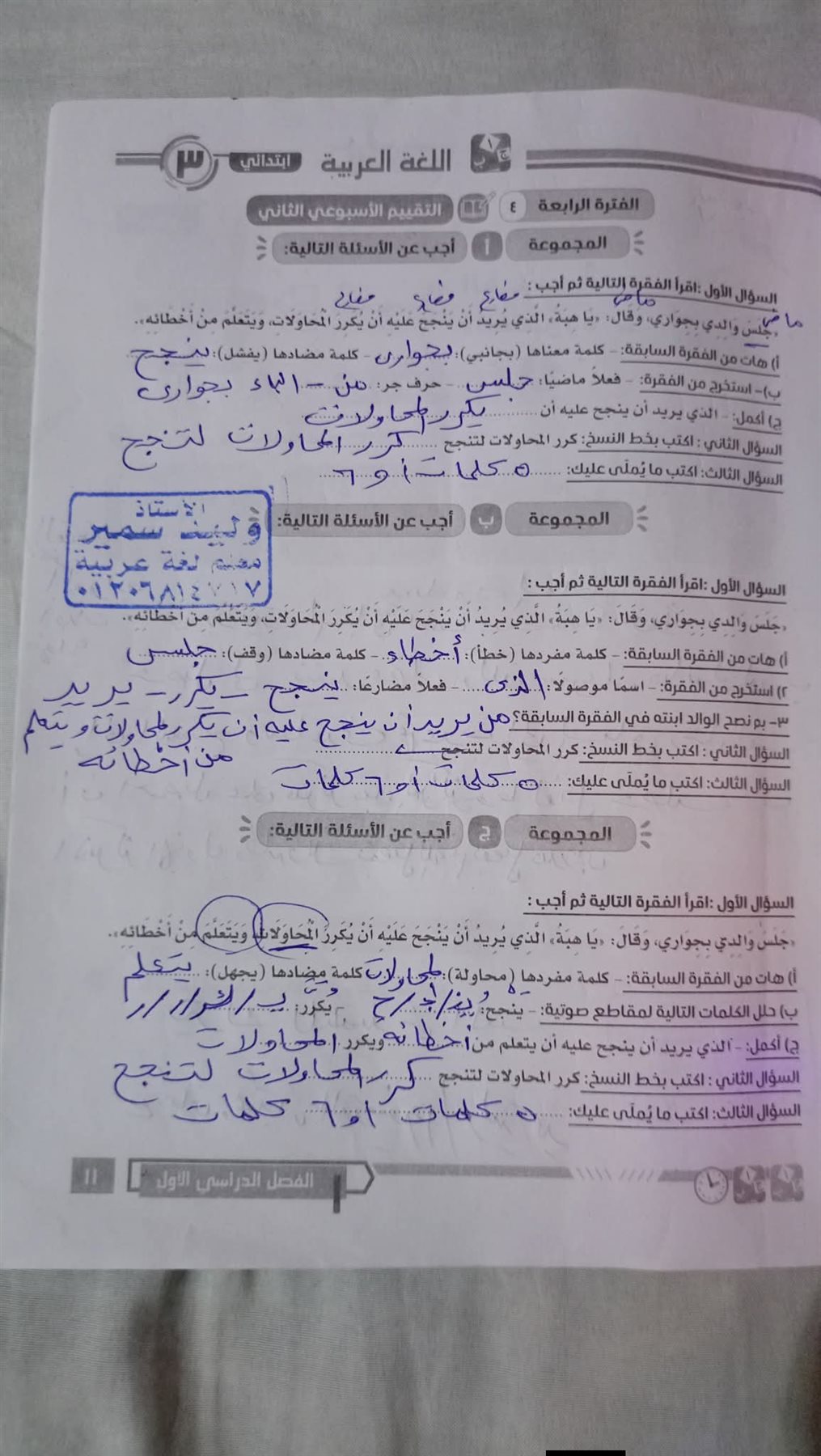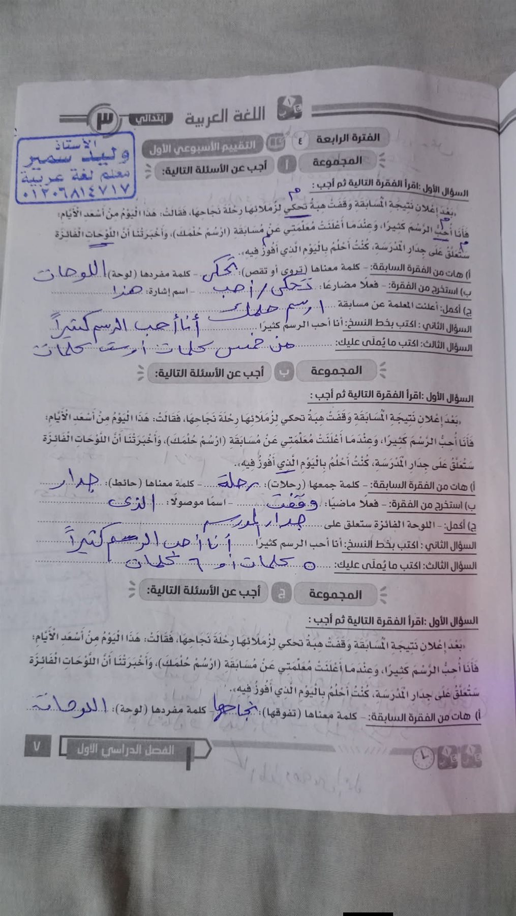 نشر أحد المعلمين، حل تقييمات مادة اللغة العربية لـ طلاب الصف الثالث الابتدائي الترم الأول 2026، بكتيب التقييمات، التي وزعتها وزارة التربية والتعليم والتعليم الفني بقيادة محمد عبداللطيف على الطلاب لأول مرة بالعام الدراسي الجاري 2025/2026.