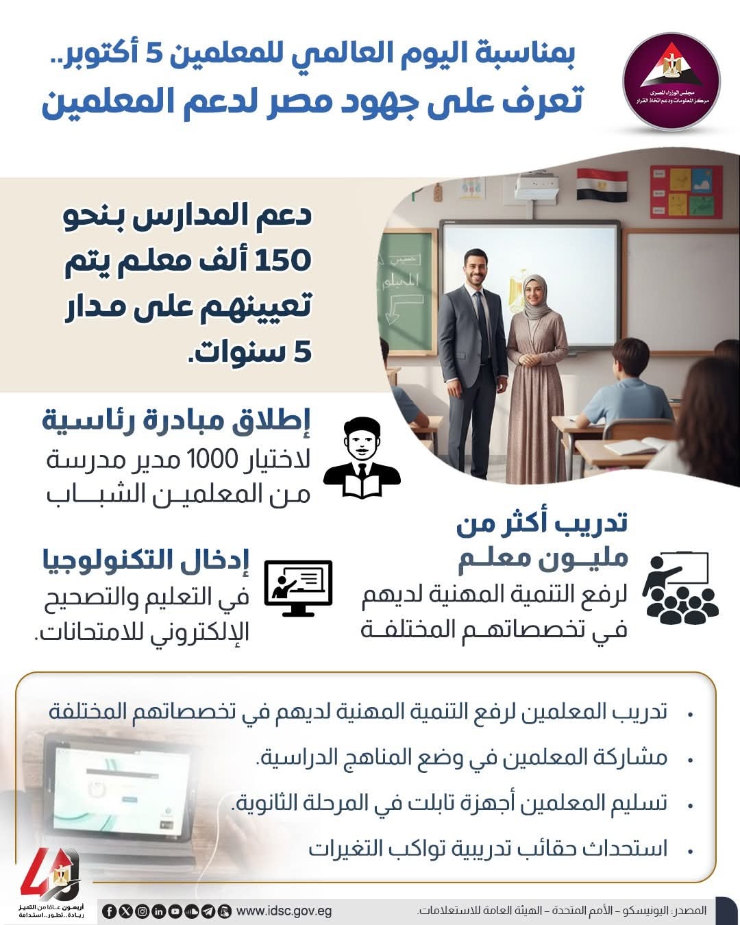 بمناسبة اليوم العالمي للمعلم.. جهود مصر لدعم المعلمين (إنفوجراف)