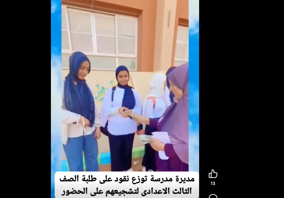 وظهر في الفيديو المتداول على مواقع التواصل الاجتماعي مديرة المدرسة وهي توزع أمولًا على طلاب الصف الثالث الإعدادي، لتشجيعهم على الحضور، وذلك حسب ناشري الفيديو.