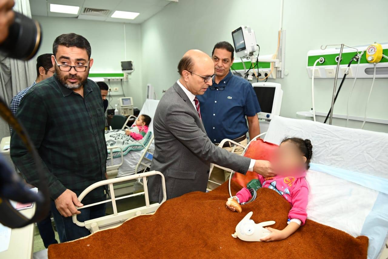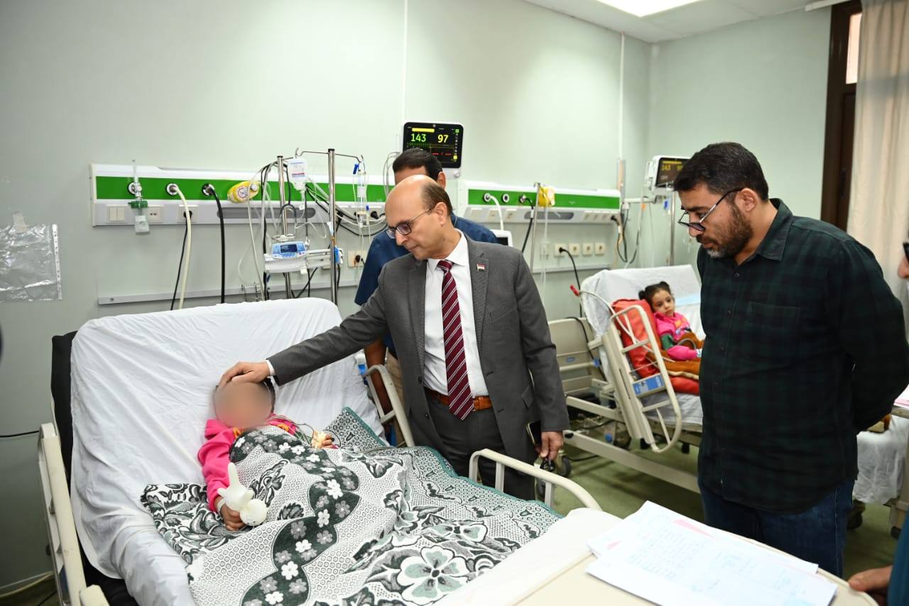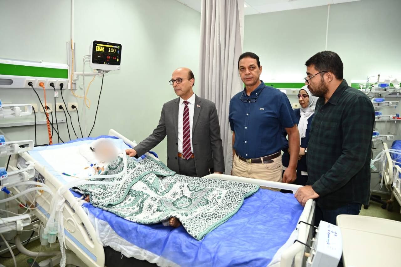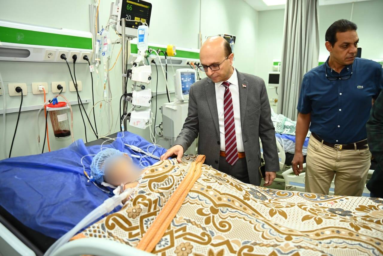 رئيس جامعة أسيوط يتفقد الحالة الصحية للأطفال المصابين في حادث منقباد