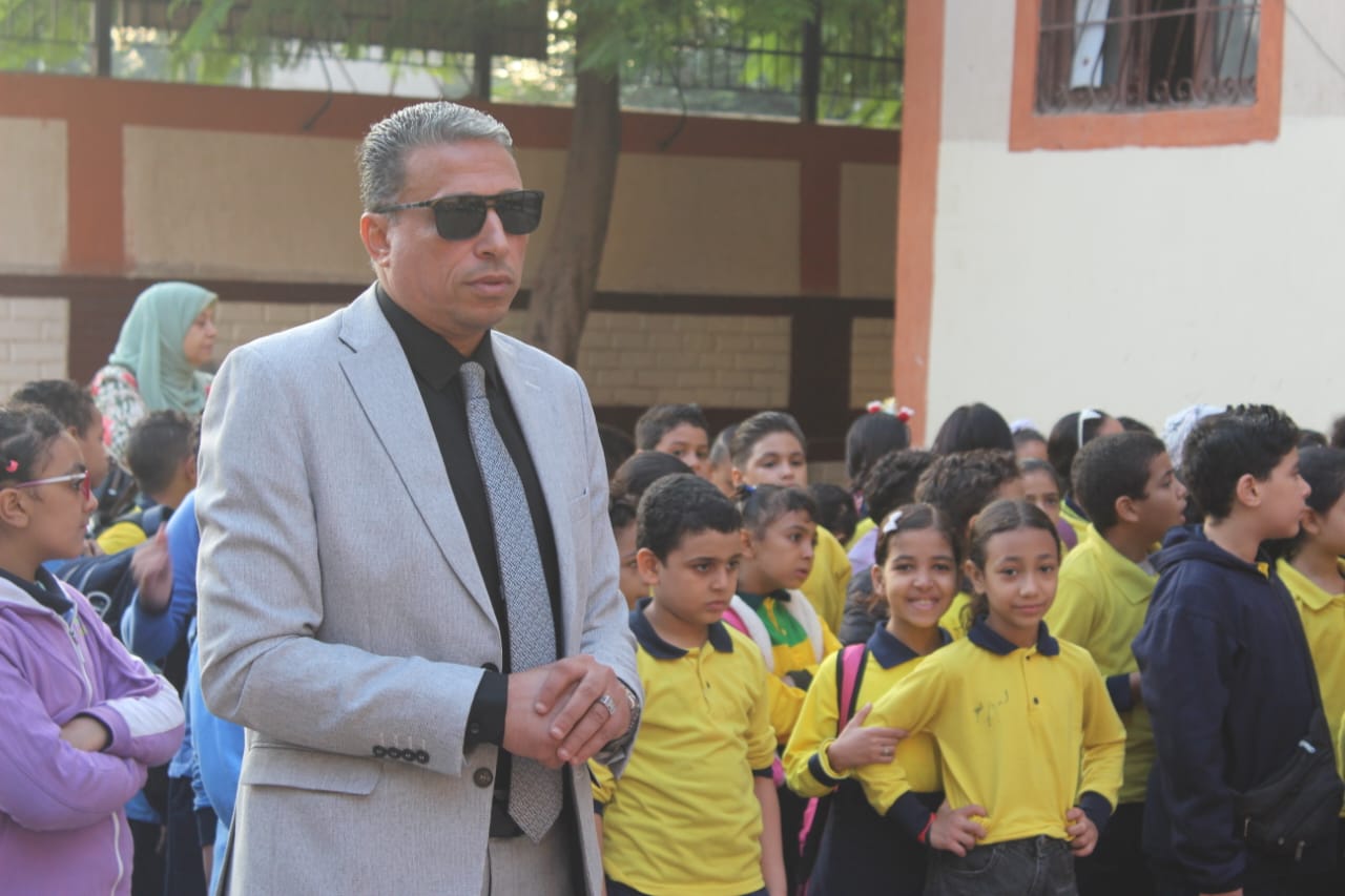 استهلّ "عطية" جولته بحضور الطابور الصباحي بمدرسة الفاروق عمر، حيث اطمأن على انتظام الطلاب وصعودهم إلى الفصول في أمان وانتظام، مشيدًا بالانضباط الذي لمسه في أداء المعلمين والطلاب على حدٍّ سواء، ومؤكدًا أهمية أن يبدأ اليوم الدراسي بالتحية الوطنية المفعمة بالعزة والانتماء.