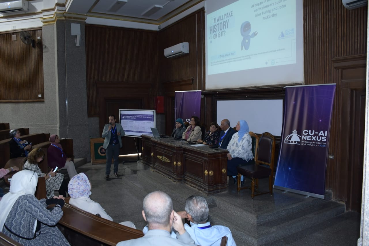 استضافت جامعة القاهرة جلسة علمية متخصصة ضمن فعاليات المؤتمر الدولي الأول للذكاء الاصطناعي، بعنوان "تعريف جودة الرعاية الصحية بالذكاء الاصطناعي: الدقة، الأمان والثقة"، والتي جمعت نخبة من رواد التعليم الطبي والجودة الصحية وأساتذة كلية الطب.