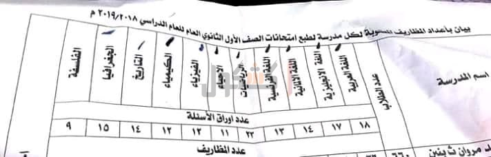 حددت وزارة التربية والتعليم والتعليم الفني بيان بأعداد المظاريف المصحوبة لكل مدرسة لطبع امتحانات الصف الأول الثانوي العام للعام الدراسي 2018-2019م.