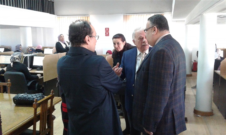 وتفقد الدكتور جابر خلال جولته معامل المكتبة الرقمية وغرفة التبحيث واستلام الرسائل وقاعة أعضاء هيئة التدريس