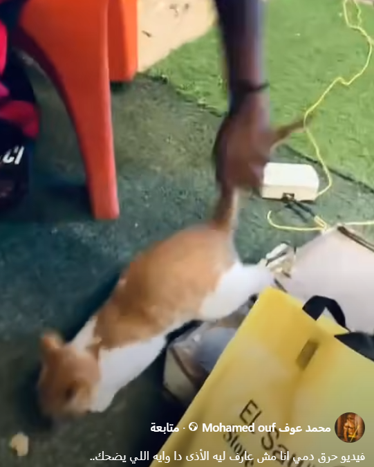 جاء على النحو التالي: فيديو متداول لقطة جعانة كانت واقفة بتبص على مجموعة شباب قاعدين في كافي شوب في دور مرتفع، خايفة تقربلهم بس الجوع غلاب، فـلما نادوها اطمّنت ومشيت لهم بخطوات بسيطة، لكن الصدمة؟ أول ما قربت… مسكها واحد منهم من ديلها ورماها من فوق 😭 والكارثة الأكبر إنهم قبلها بلحظات كانوا راميين أمها كمان، وصوروا القطط كمان ونزلوا الفيديو وهم بيضحكوا وفرحانين بنفسهم ويالجحود ال مالي قلوبهم العفنة، وصاحبه بيقوله: "زوم عليهم"💔 والقطط بتغرق تحت بتبصلهم بنظرات حزن كأنها بتقولهم إحنا عملنا فيكوا إيه.. الجيل ده قنبلة موقوتة كل المصايب جاية منه الحقوا سيطروا على نزعاتهم الشيطانية قبل فوات الأوان من حيث سن قوانين جديدة وتأديب ورعاية.