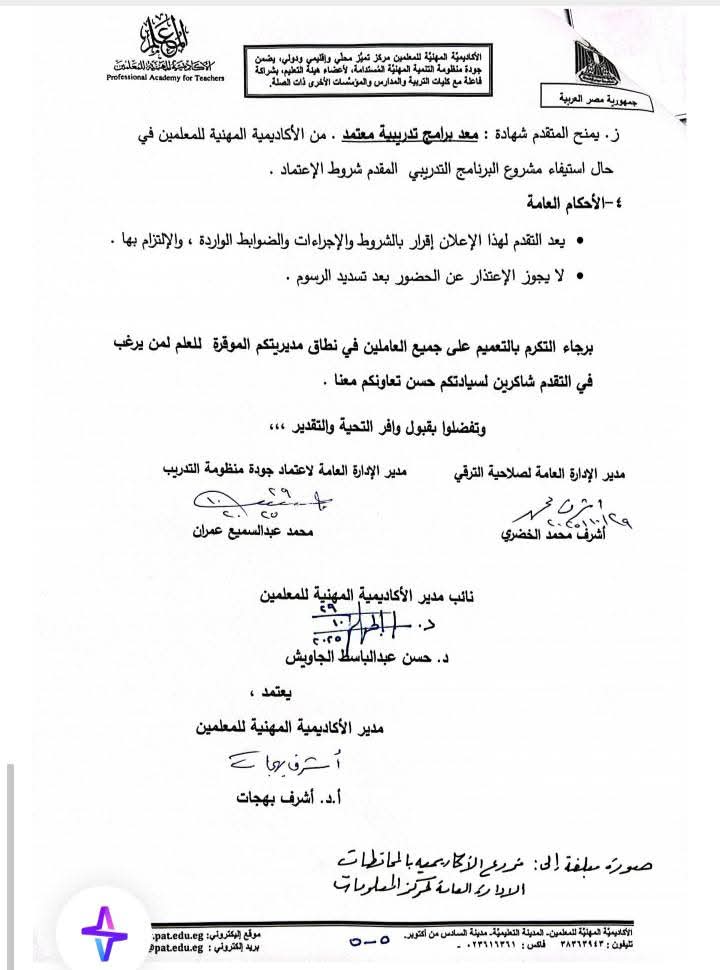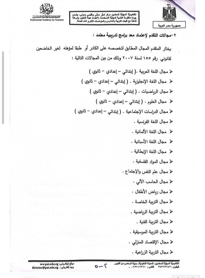 فتح باب التقدم لاعتماد معد برامج تدريبية لشاغلي وظائف التعليم