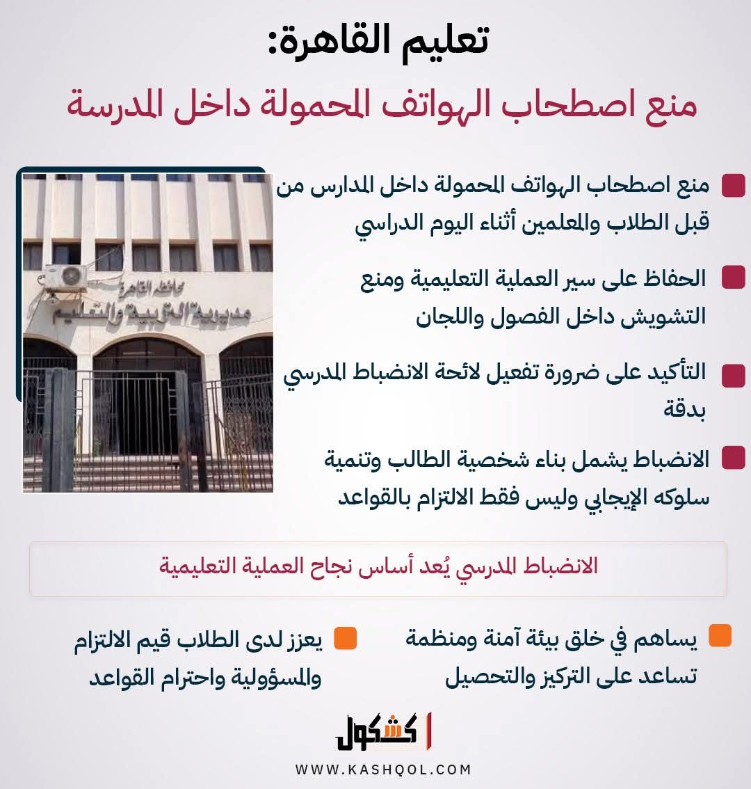 تعليم القاهرة: منع اصطحاب الهواتف المحمولة داخل المدرسة «انفوجراف»