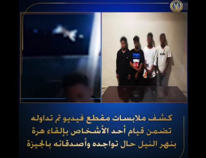 تمكنت الأجهزة الأمنية بالجيزة من كشف ملابسات مقطع فيديو متداول على مواقع التواصل الاجتماعي، يظهر خلاله قيام أحد الأشخاص بإلقاء قطة في نهر النيل أثناء تواجده مع مجموعة من أصدقائه.