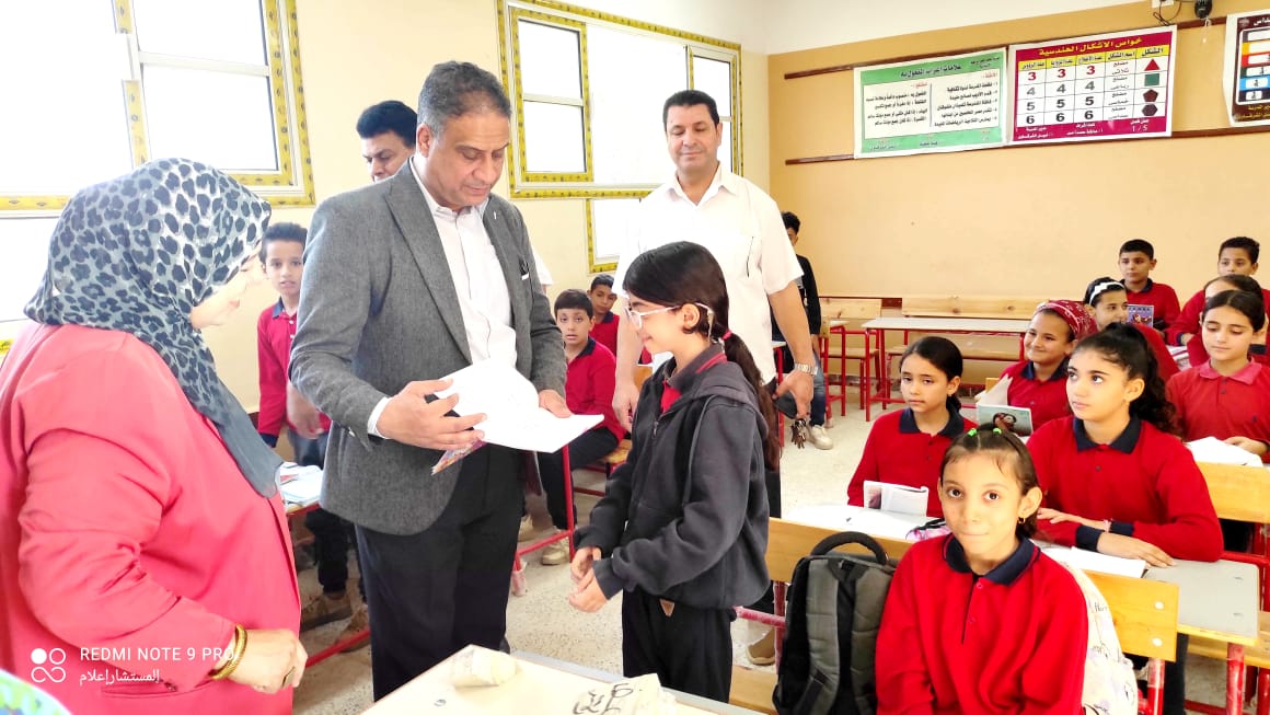 واطمئن على  انتظام سير العمل  وتحديث قوائم الفصول وانضباط سير العمل بالمدرسة، مشددا على ان تكون التقييمات جزء ثابت من الحصة الأولي وجزء من الحصة الأخيرة علي مدار الأسبوع