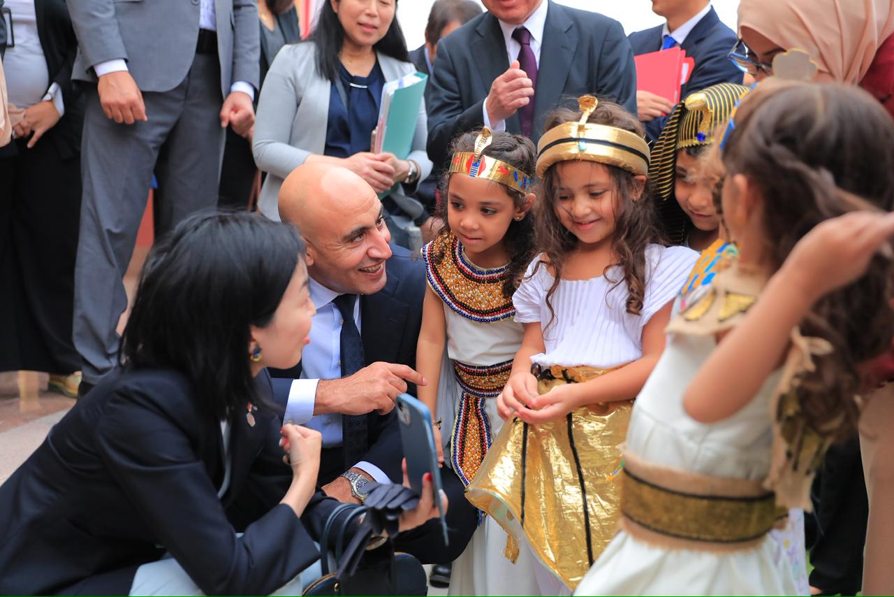 كما التقط الوزير محمد عبد اللطيف والأميرة أكيكو ورئيس الجايكا والسفير الياباني صورًا تذكارية مع الطلاب الذين ارتدوا الزي الفرعوني، وأعضاء الوفد الياباني وأعضاء هيئة التدريس وإدارة المدرسة، وسط أجواء مفعمة بالود والإعجاب بالتجربة التعليمية المشتركة.