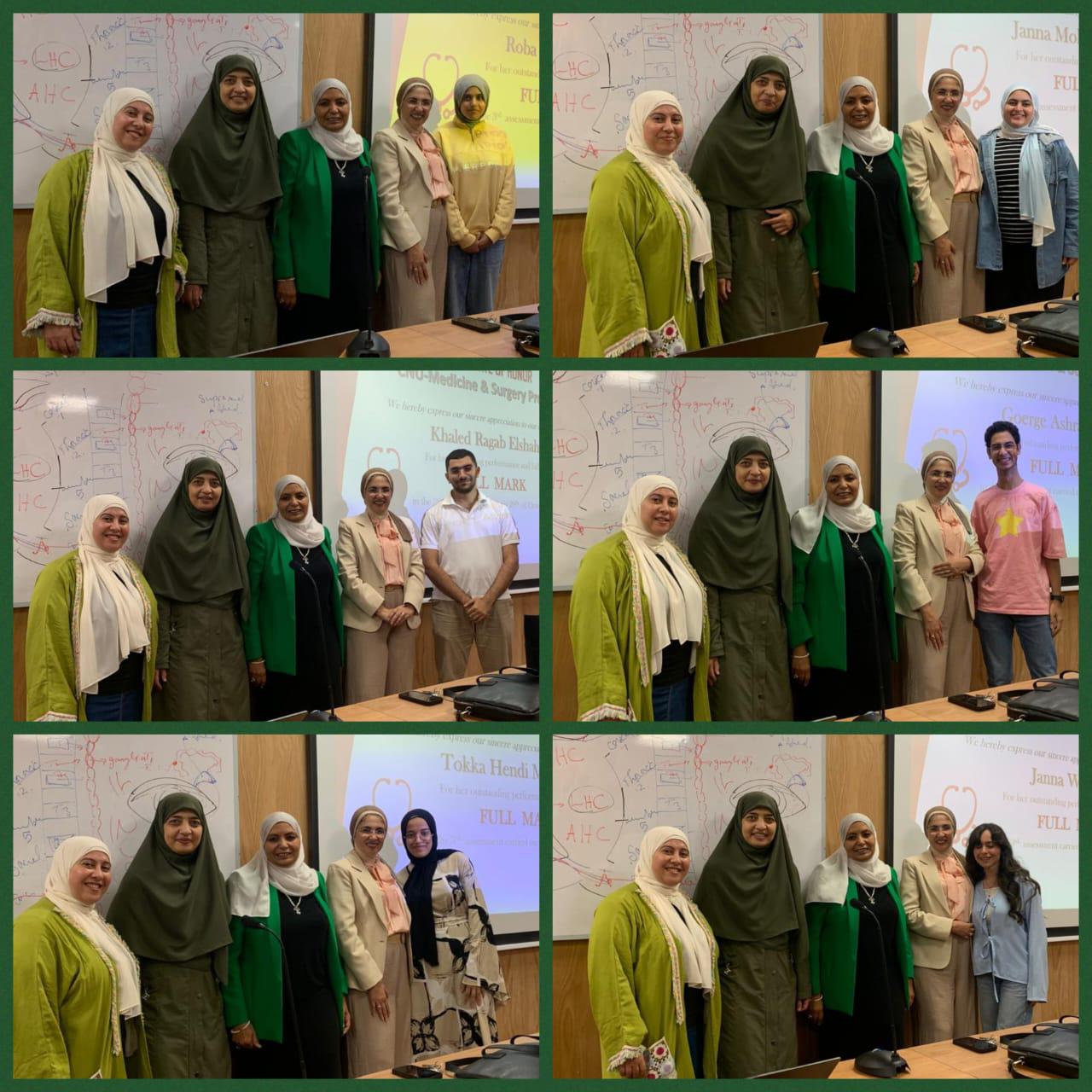 شهد فعاليات التكريم، د.محمد محسن العطار نائب رئيس جامعة القاهرة الأهلية للشؤون الأكاديمية، ود.جيهان المنياوي عميد كليات قطاع العلوم الصحية، ود.عبير زايد مدير برنامج الطب والجراحة، إلى جانب نخبة من أعضاء هيئة التدريس بكلية طب قصر العيني، والطلاب.