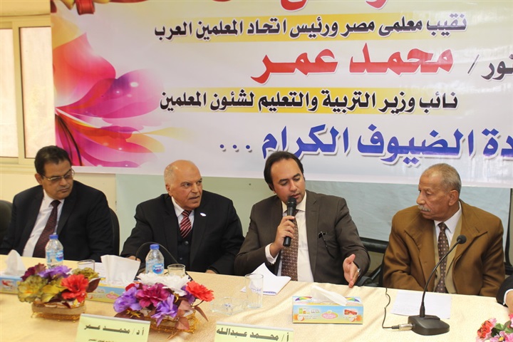 وأضاف نائب الوزير، أن وزارة التربية والتعليم تبحث حالياً التكفل بمصروفات إجراء المعلمين للدراسات العليا بكليات التربية، لمساعدتهم في النواحي المهنية، متوجهاً بالشكر في نهاية حديثه لنقابة المعلمين على الدور الخدمي الذي تبذله النقابة من أجل المعلم.